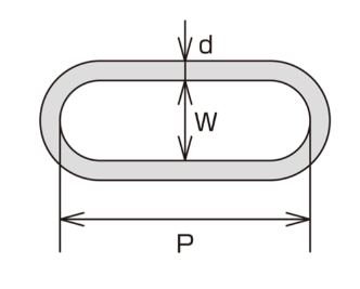 | Part No. | Wire Dia. d (mm) | Inner Length P (mm) | Inner Width W (mm) | Weight per meter (kg/m) (Calculated) | Working Load (Reference) | Breaking Load (Reference) | ||