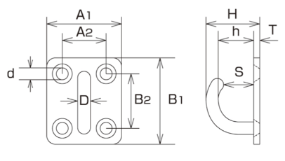 | Product Number | D | A1 | A2 | B1 | B2 | H | h | d | S | T | Weight (g) | Reference Load (kgf) | Reference Load (kN) |
