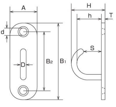 | Model | D | A | B1 | B2 | H | h | d | S | T | Weight (g) | Reference Load (kgf) | Reference Load (kN) |