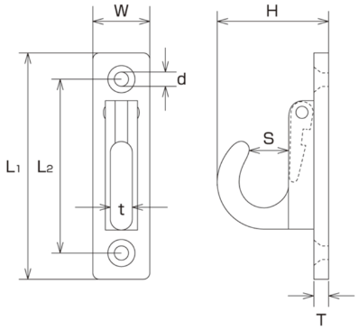 | Product Number | L1 | L2 | W | H | S | d | T | t | Weight (g) | Reference Load (kgf) | Reference Load (kN) |