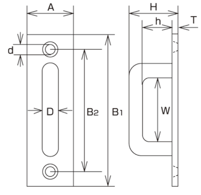 | Model | D | A | B1 | B2 | H | h | W | d | T | Weight (g) | Reference Load (kgf) | Reference Load (kN) |