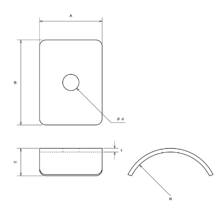 | Part No. | A | B | d | H | t | R | Weight (g) | |