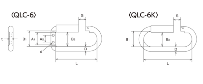 | Part No. | D | L | B1 | B2 | S | A1 | A2 | d | t | Weight (g) | Reference Working Load (kgf) | (kN) |