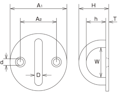 | Model | D | A1 | A2 | H | h | W | d | T | Weight (kg) | Reference Load (kef) | Reference Load (kN) |