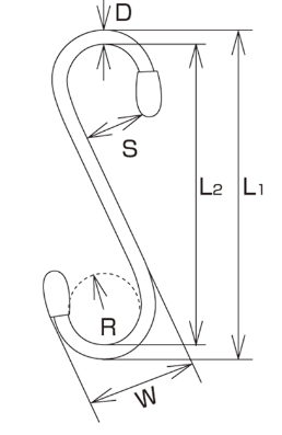 | Part No. | D | L1 | L2 | W | S | R | Weight (g) | Reference Working Load | |