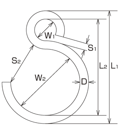 | Part No. | D | L1 | L2 | W1 | W2 | S1 | S2 | Weight (g) | Reference Working Load (kgf) | Reference Working Load (kN) |