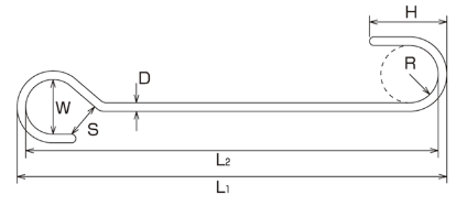 | Product Number | D | L1 | L2 | W | S | H | R | Weight (g) | Reference Load (kgf) | Reference Load (kN) |