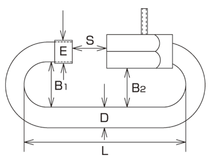 | Part No. | D | S | L | B1 | B2 | E | Wrench Size | Weight (g) | Reference Working Load (kgf) | (kN) |