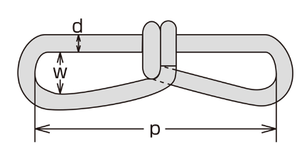 Part No.Applicable Rope Dia.Inner Length PInner Width WWeight per meter (kg/m)Working Load (Reference)Breaking Load (Reference)