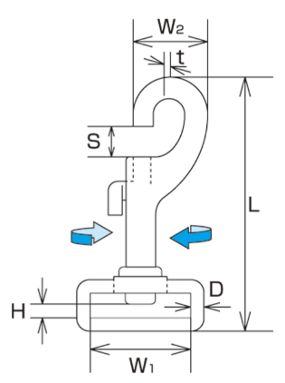 | Product No. | D | L | W1 | W2 | S | H | t | Weight (g) | Reference Load (kgf) | Reference Load (kN) |