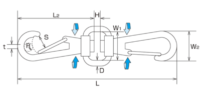 | Product No. | D | L | L2 | W1 | W2 | S | R | H | t | Weight (g) | Reference Load (kgf) | Reference Load (kN) |