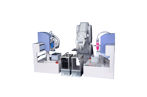 ・Multiple coating processes can be processed simultaneously by lining up tabletop robots.