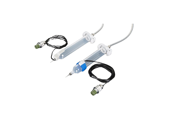 ・A manual hand switch that can be attached to the tip of a syringe to control dispensing on/off at hand.