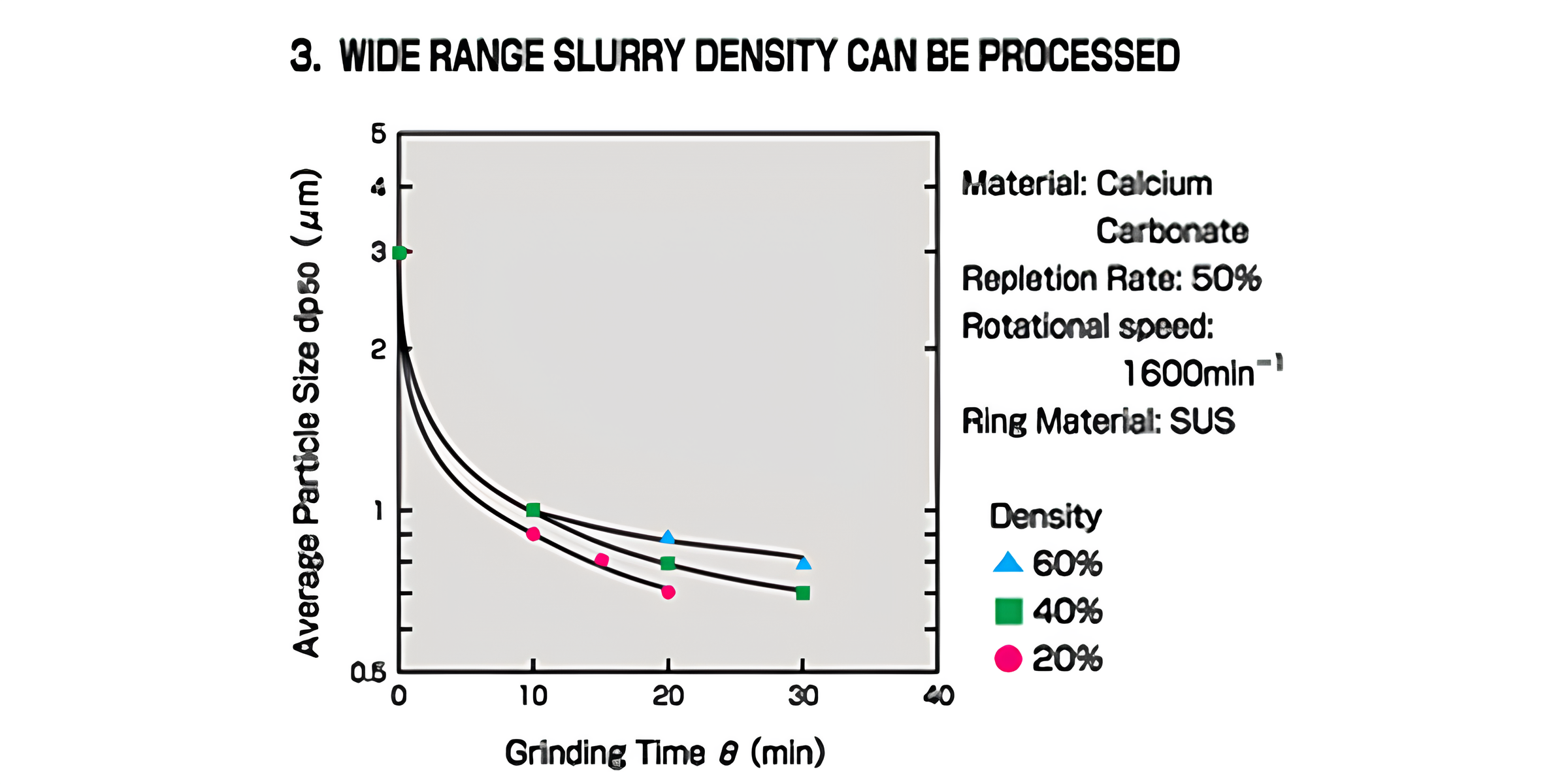 - Slurry with high viscosity can be milled or dispersed in a short processing time.