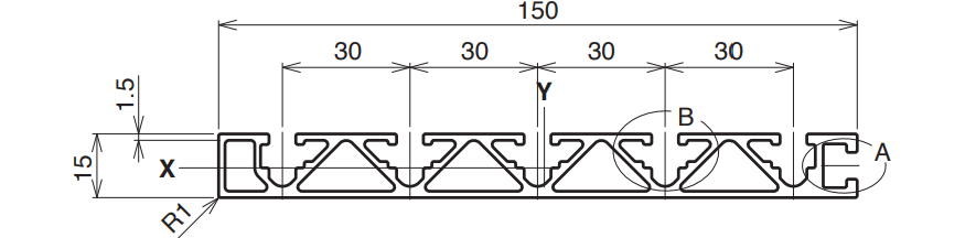 6,000 mm15–4,000 mmA6063S-T5185 N/mm²795.0 mm²2.147 kg/mIx 2.38 × 10⁴ mm⁴