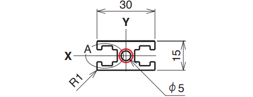 | 6,000 mm | 15–4,000 mm | A6063S-T5 | 185 N/mm² | 253.2 mm² | 0.684 kg/m | Ix 0.72 × 10⁴ mm⁴ Iy 1.54 × 10⁴ mm⁴ |