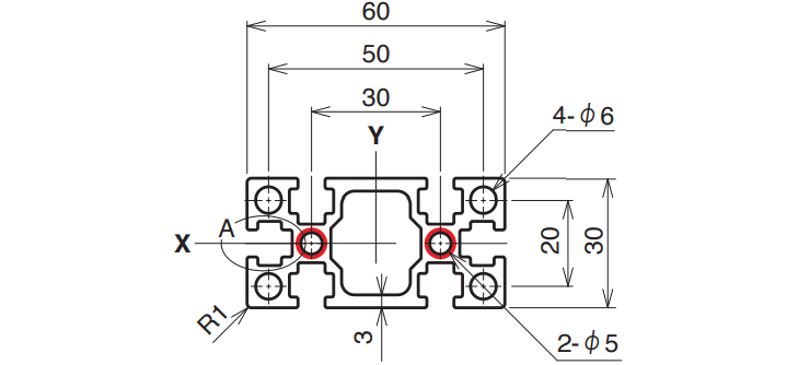 6,000 mm15–4,000 mmA6063S-T5 (205)225 N/mm²694.1 mm²1.874 kg/mIx 6.79 × 10⁴ mm⁴