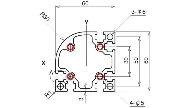 6,000 mm15–4,000 mmA6063S-T5 (205)225 N/mm²1055.5 mm²2.850 kg/mIx 42.5 × 10⁴ mm⁴