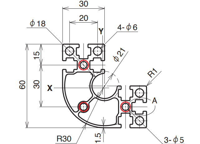 6,000 mm15–4,000 mmA6063S-T5 (205)185 N/mm²778.0 mm²2.101 kg/mIx 26.8 × 10⁴ mm⁴