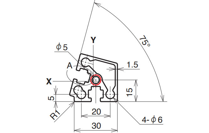 6,000 mm15–4,000 mmA6063S-T5 (205)225 N/mm²373.8 mm²1.009 kg/mIx 3.37 × 10⁴ mm⁴