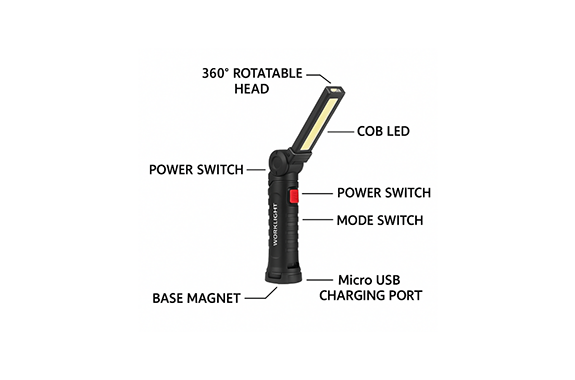 You can fold and rotate the light head 360 degrees to suit your needs. Use the built-in magnet to attach it to any metal surface or hang it with the hook to work comfortably in tight spaces.