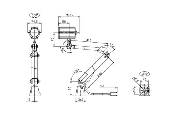 | NLS | S= No arms | 05C | [Arm length: M, L only] No code= Square pipe (resin base)(M: 415x280mm) | DC = DC24V | Oil-resistant cable |