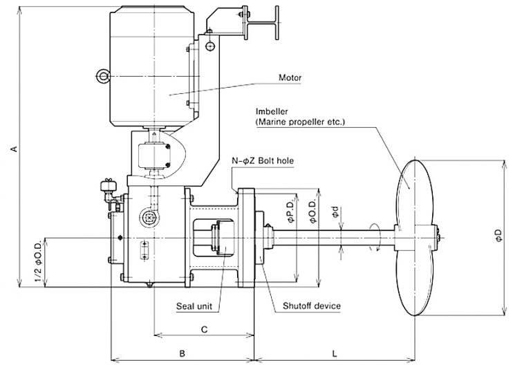 Series # | A | B | C | Mixing Shaft diameter Φd | E | F | Nominal diameter | ΦO.D. | ΦP.D. | N-ΦZ | Approx. mass (kg) |