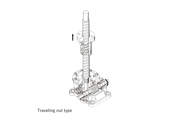 - This type uses rolling friction between the nut and lifting screw, and its efficiency is approximately 3 times higher than that of the trapezoidal screw type, realizing energy-saving operation.