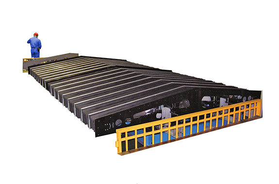 The body uses specially designed seats, while slide plates (intermediate support plates) are typically installed every 7 to 10 bellows ridges. Rollers, tailored to each model, ensure the bellows move smoothly during reciprocation. Additionally, a chain mechanism is in place to facilitate smooth extension and contraction of the bellows.