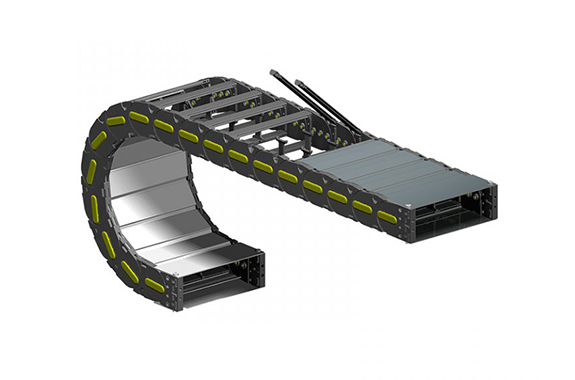 The Heavy Series uses a stronger link connection system with yellow triple pivot pins, and is capable of supporting free spans of up to 6.5m. It also boasts a wide lineup with up to 21 different width sizes.