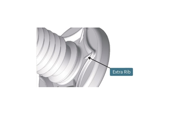 The “strong anti-rotation strength” is added to the JOISTUD that prevents warping and burring of the mating sheet. Combination of extra ribs with outer-rimmed protrusion provide an even greater anti-rotation effect.