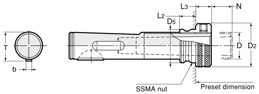 Model | Model | Adjustable adapter | D H6/h6 | D2 ±0.2 | D3 ±0.3 | D5 -0.04 -0.1 | L1 | L2 | L3 | b | T | N | kg |