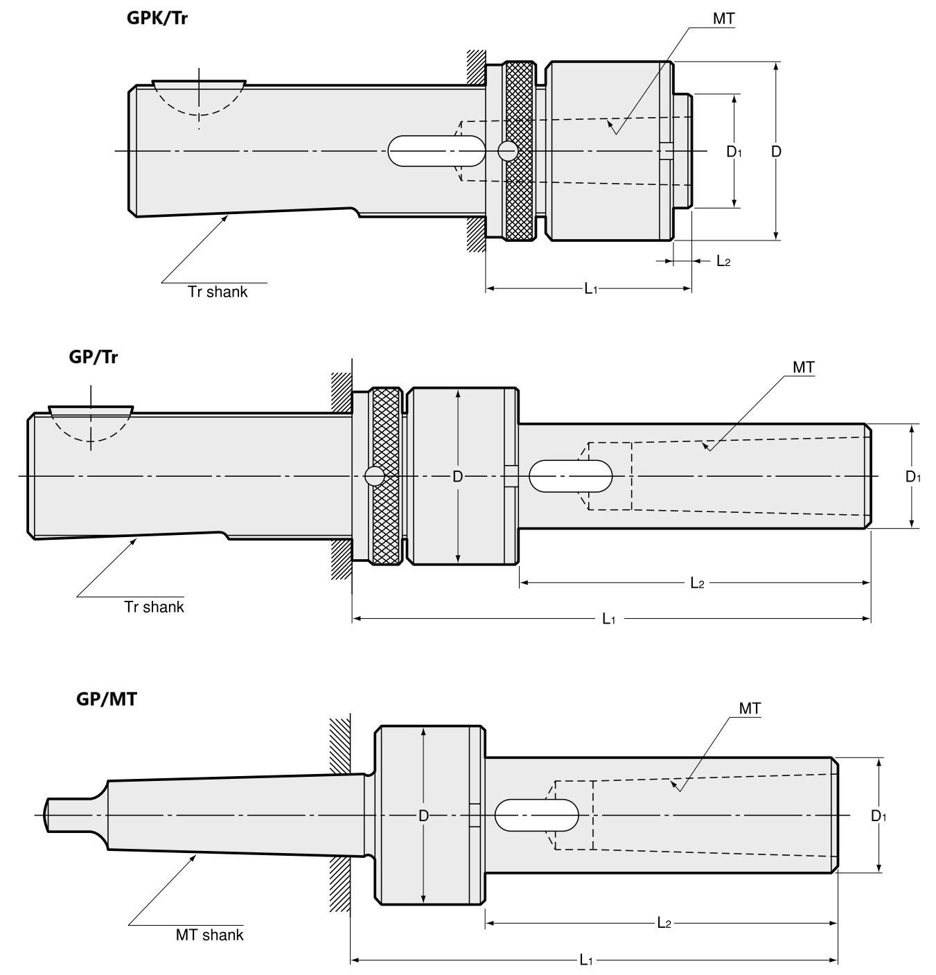 GP1 / Tr20×2 | MT1 | 0.5 | 32 | 18 | 112 ~ 142 | 74 | 0.5 |
