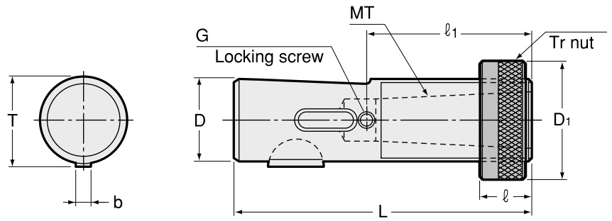 Model | MT | D | D1 ± 0.2 | L | b | T | ℓ | ℓ1 | G | kg |