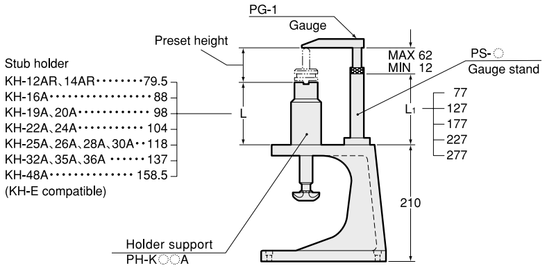 - For projection length adjustment of KH-A and KH-E type stub holders.