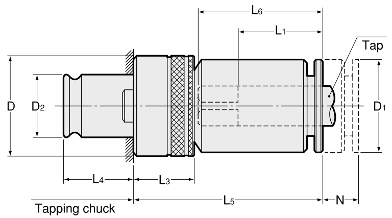 Model | Tap Size | Chuck size | Adjustable length (N) | D | D1 | D2 | L1 | L3 | L4 | L5 | kg |