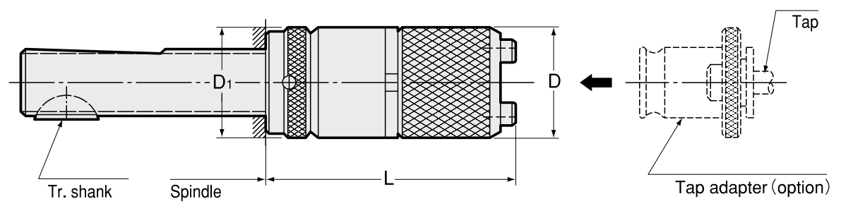 Model | Tap Size | Adapter Size | Radial Float | D | D1 | L | kg |