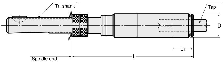 • Axial length compensation function absorbs machine feed discrepancies between spindle and tap.