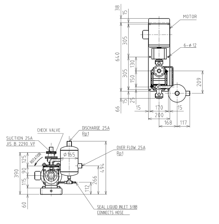 | Inlet flange | 25A JIS B 2290 VF | ||
