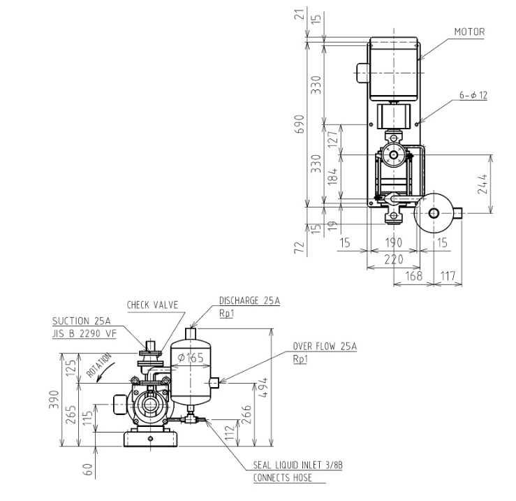 • Can achieve base pressure below the steam pressure of the liquid ring by attached the air ejector.