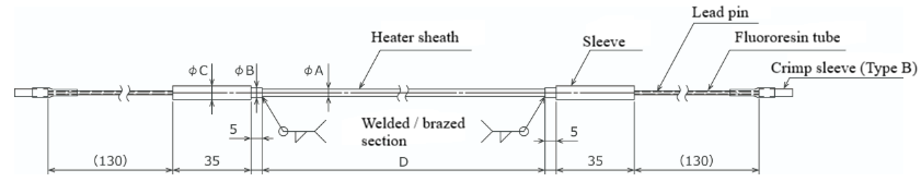 - The heater is thin and flexible, so it can easily bend and wound. (Minimum bending radius: 3 times the outer diameter of the sheath)