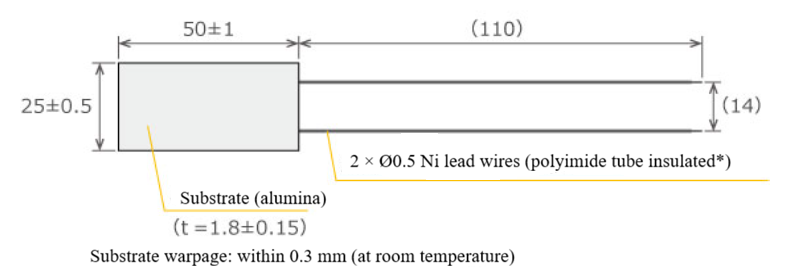 | Dimensions | 25mm×50mm | Watt Density (at room temperature) | 8W/cm2 |