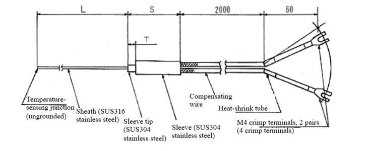 Sakaguchi K-type φ0.5 sheathed thermocouple (compatible with MAX 200°C environment)