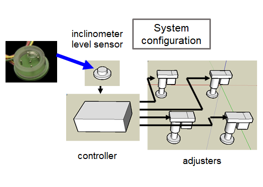 • The system maintains the table level by applying the level sensor of a digital spirit level and driving a level-control actuator.