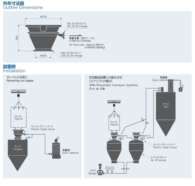 - Combined with various pneumatic conveyor systems, such as air lifts and Pneudensers, the FleCon Clean Hood makes a dust-free, efficient receiving system.