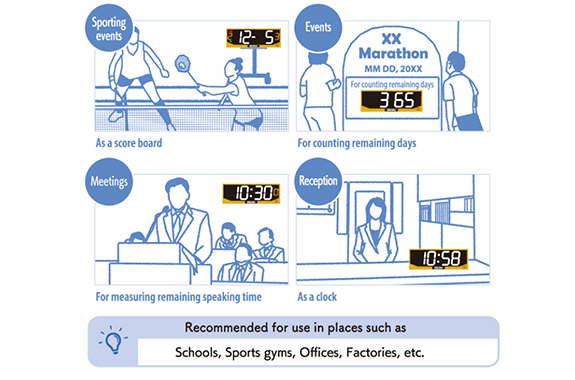 This is a compact, multifunctional digital timer with a wide variety of uses, such as displaying times and scores for sporting events, measuring remaining speaking time in meetings, and counting days remaining until events.
