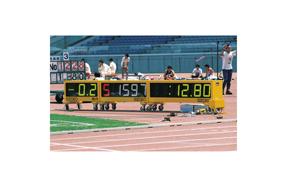 Upon reception of a lap signal, the lap time remains displayed for 5 sec., and then, the display returns to the running time.