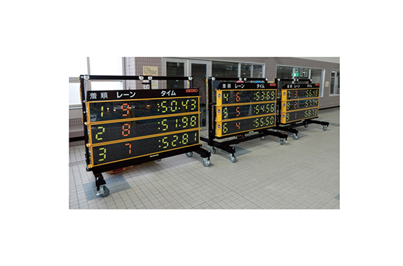 Up to 11 display units can be installed in a scoreboard based on the number of lanes used in the competition.