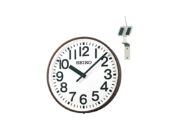 A wall-type secondary clock receives a 30-second polarized signal at DC 24 V.