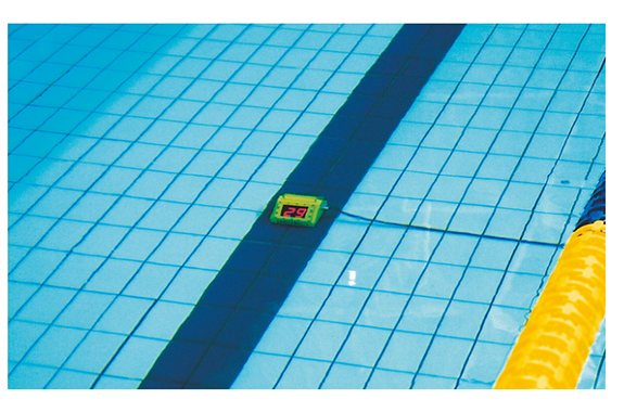 The SEIKO underwater lap counter system for swimming competition displays to the swimmer the remaining number of laps in a long-distance race in a visible manner using a display board installed underwater. Operating in sync with the printing timer, the operation board automatically calculates the remaining number of laps, and displays in on the underwater display board installed in each lane. With the use of the two-digit high-intensity LED display that enables the swimmers to know the remaining number of laps to swim easily, this system supports the safe and smooth progress of the swimming competition.
